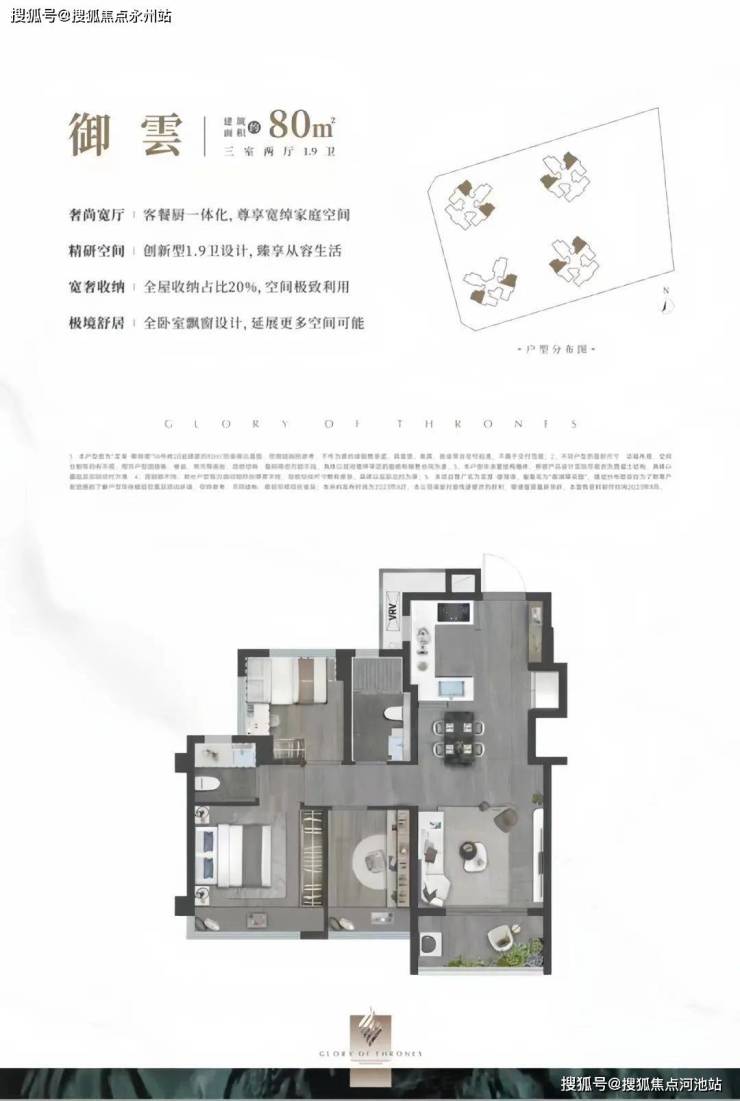 项目主推建面约80㎡-120㎡的精装三至四房产品,精研户型,全面升级居住体验。