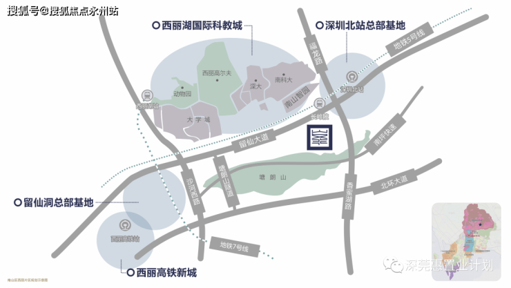 西丽:深圳六大总部基地,南山独占四个,南山大学城,西有留仙洞总部基地,东有深圳北站总部基地。南山向北,打造“中国硅谷”的三大核心引擎尽在西丽,西丽将成深圳科创&人文双高地。