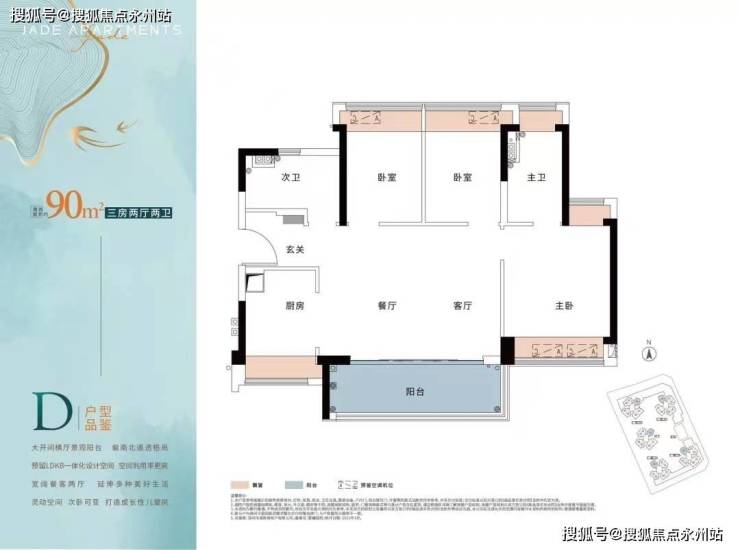 建面约90㎡三房:此户型最为吸引人的是阳台的尺寸,在片区几乎难再有的约5.6米阔绰景观阳台设计,开启生活中的无限想象,主人房带大飘窗,诗意生活就在眼前。