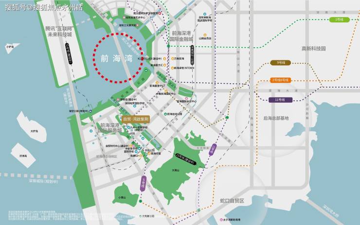 前海划分为3个片区,桂湾、前湾和妈湾,桂湾是金融区,前湾类似政务区,妈湾是比较纯粹的居住区。桂湾和前湾启动比较早,地块比较零散,虽然配套相对成熟,但地块小缺乏规模效应。