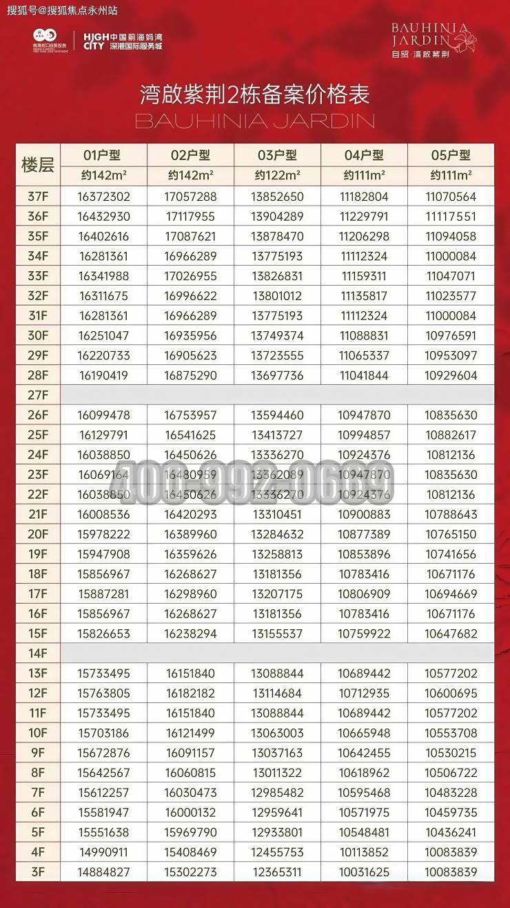位于前海妈湾的「湾啟紫荆府」已取证,加推最后一栋住宅2栋165套,面积为111-122-142㎡,其中111㎡3+1房66套,122㎡4房33套,142㎡4房66套,备案均价10.71万/㎡,计划在2027年3月30日带智能精装交付。