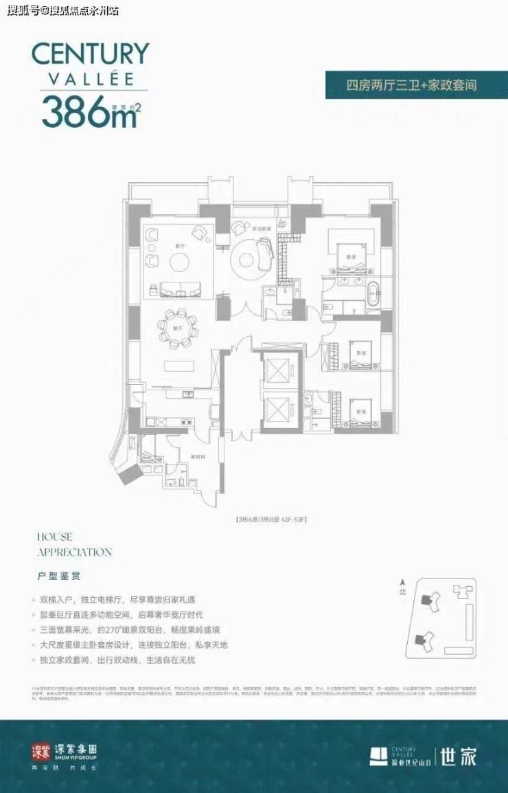 深业世纪山谷前两次都是公寓,现在住宅首发!还是定位相当高端的纯大平层,8梯3户,240㎡/280㎡配备两个独立电梯,380㎡双梯设计,实在任性!