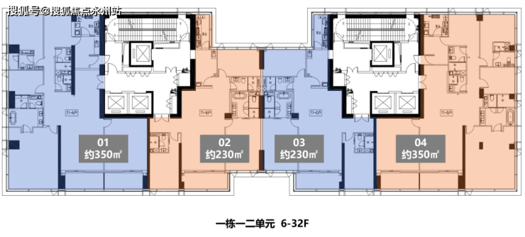 一单元:1601(350m²)、1602(230m²)