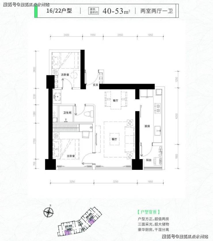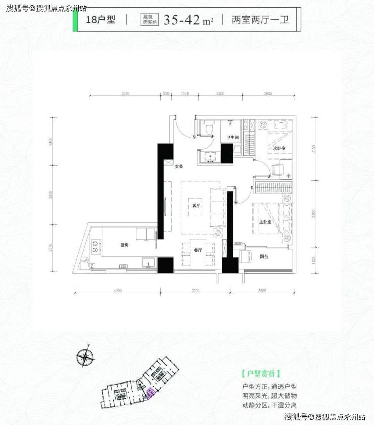 拥有绝佳使用率、建面约42㎡的住宅房源,预计总价要在4字头。几乎都超过100%,其中42㎡的户型更是近130%,以至于不仅做了两房,连次卧都有8个平方。
