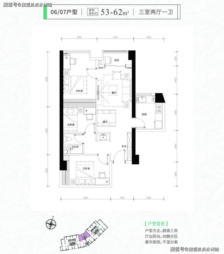 福田即小户型住宅现房——君临天下·君临芯公馆,66套住宅和198套公寓,面积段均为34-76平(一房两厅一卫、两房两厅一卫、三房两厅一卫),使用率高达100%多(每个户型使用率均会有区别)