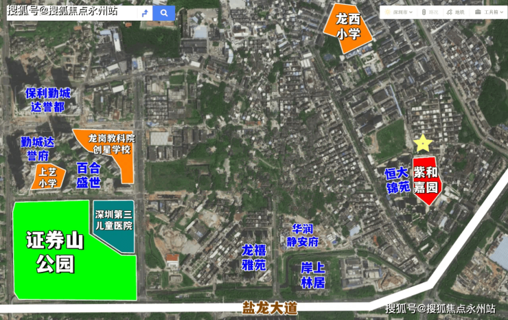 项目位于龙岗区龙岗街道盐龙大道与龙西中路交汇处东北侧,地处龙岗中心城龙西片区,项目靠近中心城主城区,也一度被称为中心城后花园,周边公园配套丰富,东侧毗邻红花岭低碳生态公园,西侧毗邻龙岗儿童公园、证券山公园、东南侧毗邻龙园,西南侧毗邻紫麟山公园,回龙埔公园。