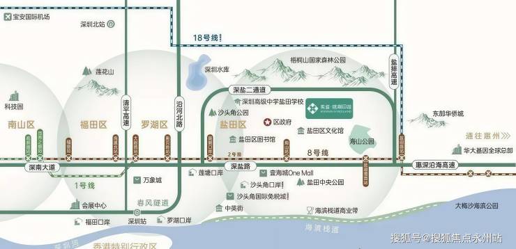 路网与口岸:紧邻深盐路、惠深沿海高速,通过春风隧道可快速衔接深圳核心区,临近沙头角口岸、莲塘口岸,往返香港便捷高效。