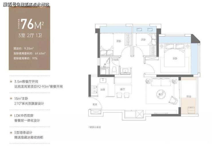目前,市面上大部分户型的使用率都在70%-75%之间,片区也在80%左右,而美盛实际使用率却达到91-99%。