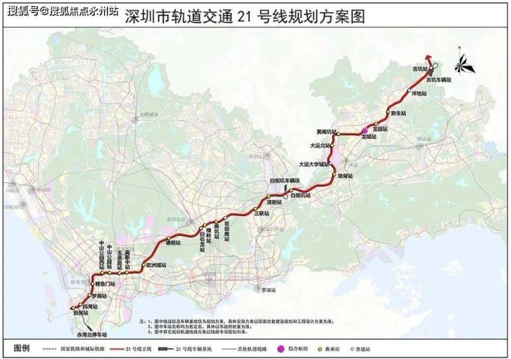 轨道交通方面,毗邻地铁3号线东延线(在建,预计2025年通车)、21号快速线(规划中)双轨交汇站新生站,其中3号线可直达罗湖、福田中心区,也可沿途换乘地铁14、16、21号线和深大城际;规划中的21号线,届时更是可快速直通南山、前海。