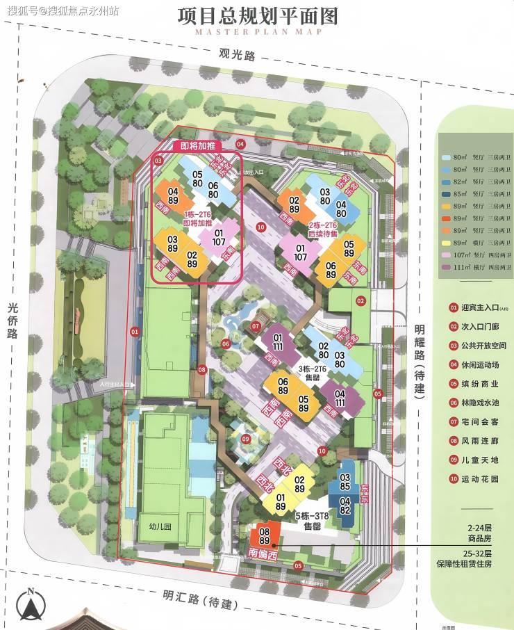 【基础资料信息】项目总占地面积约1.43万㎡,总建筑面积约11.49万㎡,计容建筑面积约7.91万㎡,容积率5.4,绿化率35.1%,共由4栋总高32-33F住宅组成,其中1/2/3栋商品房33F,5栋商品房+保障房32F,4栋是1所6班制幼儿园。
