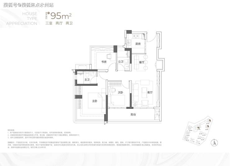 95㎡3房2卫:该户型为西南向(部分户型看海)或东北向看山景,是传统的竖庭格局,南北通透。最大亮点是,阳台从客厅对出连通到次卧,显得比较宽敞。特别是对于三代同堂的家庭,适合老人早期锻炼。