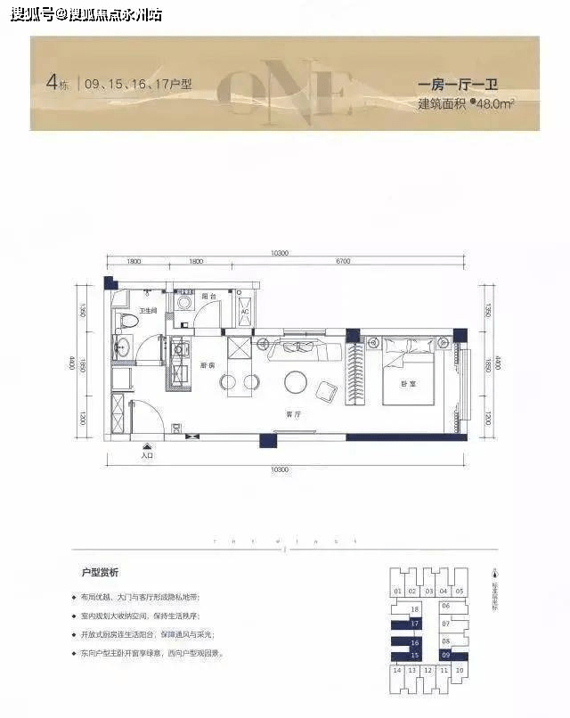 臻裝一房两厅:48 ㎡ (一层4套,朝向:3户朝西,1户朝东)