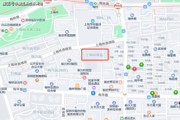 上梅林雅苑位于兴梅二巷新世界家园西北侧约50米,含3栋高层住宅,项目规划786套住宅,其中可售房源704套,另外82套为回迁房。