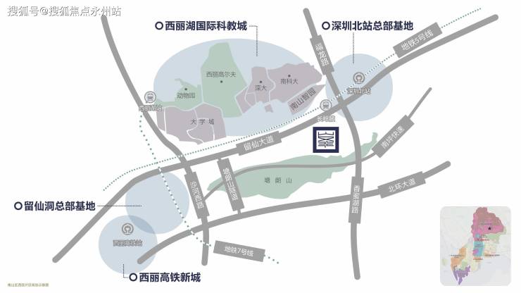 5号线目前一站可到达深圳北,南延线连接前海片区。将来可通过5号线连接规划中的13号地铁线和西丽交通枢纽,通达留仙洞总部基地、科技园和后海总部基地等重点规划片区。此外,项目还是双高铁站辐射(深圳北站、西丽站)。