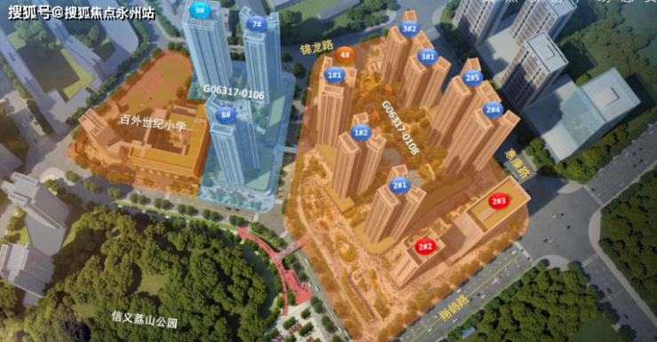 我们这个楼盘分为一二期开发,一期可售套数约314套,将毛坯交付,交付时间约在2024年2月左右。项目配建百外世纪小学,已经投入运营,还将配建一所9班幼儿园。另外,项目同时还将建设一条市政天桥,直接通往旁边的荔枝山公园。