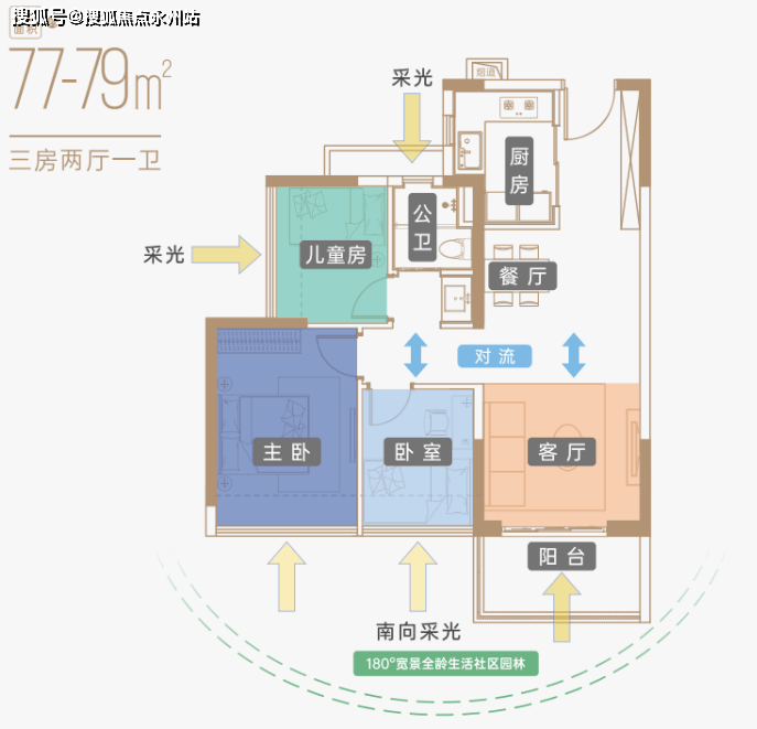 建筑面积约77-79㎡高能三房:空间体验优于市面同等面积户型,高效收纳体系,释放更多生活空间;