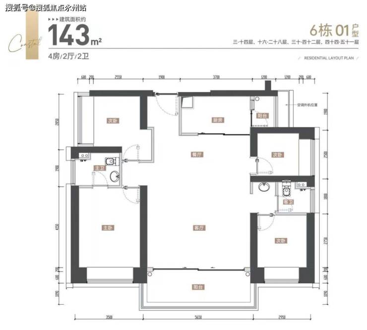 6栋为3T3户,1条腿为143㎡4房2卫,朝西南;两条腿为189㎡4房3卫,朝东北;整个3户视野都无遮挡。