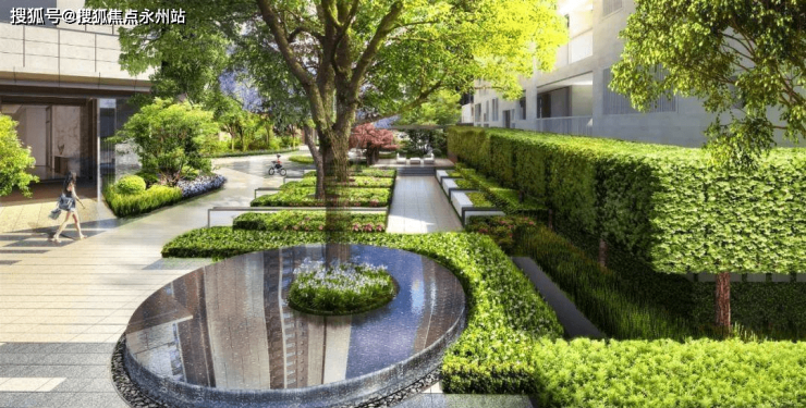 在项目的总体规划中,采用了片区稀缺的围合式布局,保证楼间距与住宅庭院的最大化;总面积约2.8万㎡的多层次立体园林,将“无界花园,生活艺述家”的设计理念融入了整个场地。