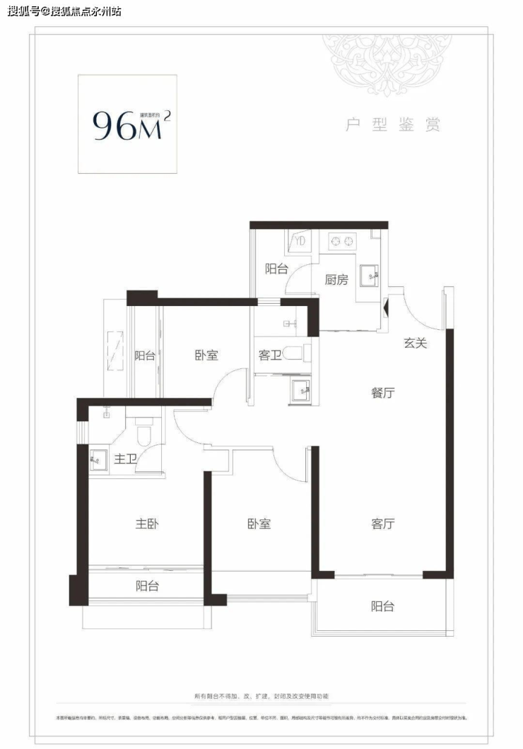 建面约96㎡3房2厅2卫户型,客厅宽敞,卧室方正。入户精心设计的玄关柜,大大增加人性化储藏空间,日常杂物、包包、鞋子……一进门就可以有序摆放。