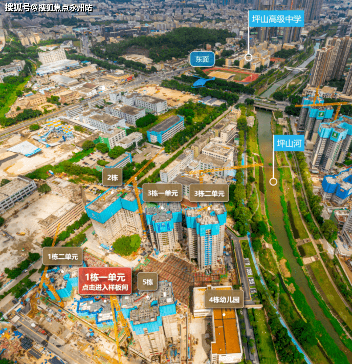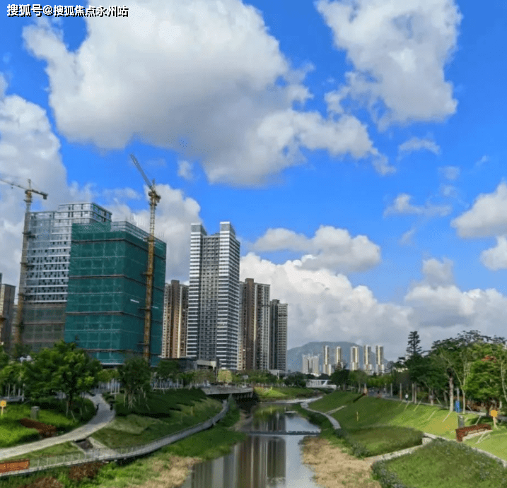 在项目内部的打造上,保利更是因地制宜。住宅塔楼沿着坪山河畔,由低到高布置,视野相互错开,能最大化利用花园、河岸景观价值,打造全南向+河岸景观+社区轴线景观的优越生态体系。