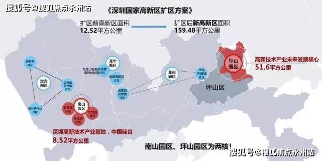 深圳东部新中心,区域价值无限,世界级创新中心,超100万㎡总部地标群,坪山高新园区,获国家级战略加持,规模达51.6平方公里,是南山科技园的6倍,作为深圳国家高新区“两核”之一写入十四五规划蓝图,与南山高新园区并列。