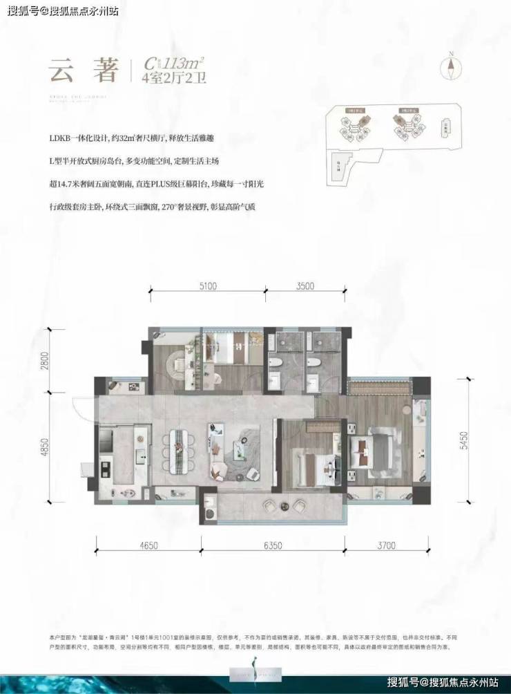 113㎡的4房2厅2卫,折后总价310-354万/套,单价2.74-3.13万/㎡。