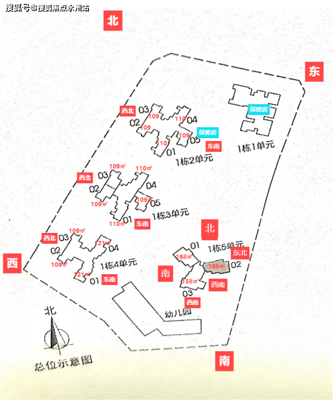 A区主要由5栋住宅组成,二、三、四单元45层,一、五单元46层,其中一单元为保障房,不与其他商品房混在一栋楼里,朝向大都是西南/东南向,少数腿正南向,三单元15楼以上及四、五单元为本次推售楼栋,面积109~169㎡的三-四房,另有12套顶楼复式