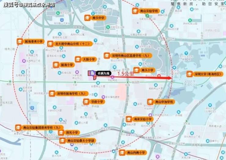 距离项目最近的学校有深圳南山区荔香学校中小学九年制,距离项目约360米,再远一点的学校是南山实验南头学校,距离项目约950米。