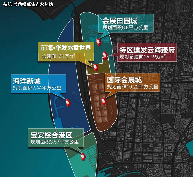 【海】3大国际码头。目前区域内有深圳机场码头、海洋新城超级码头(规划中)、国际邮轮港(规划中)。