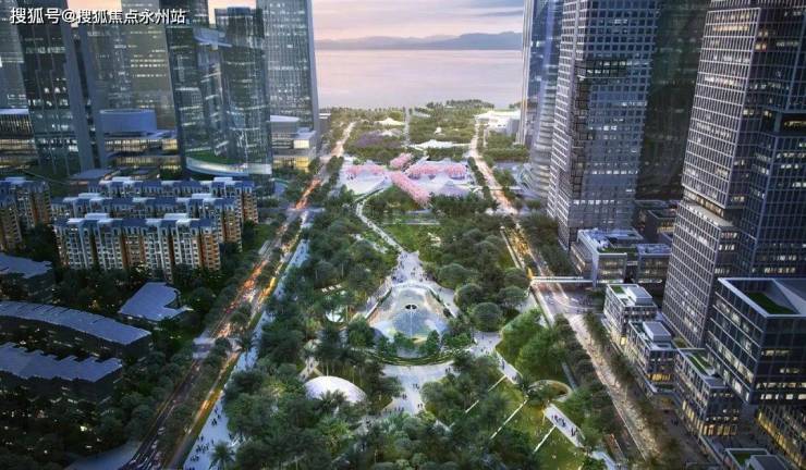 项目南边的滨海大道一段长约1.56公里的道路“隐身”于地下,扩大了城市绿化与空间营造,地面连通深圳湾超级总部基地和深圳湾公园的上盖中央绿轴,届时建成,最网红的城市公园“深圳湾公园”,引入深超总。