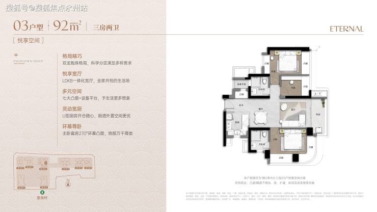 细节设计:全屋多飘窗提升采光面,部分户型次卧连通景观阳台,适合多孩家庭或三代同堂。