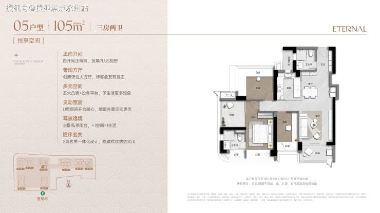 功能布局:灵活3+1房设计,弹性方厅可改造为书房或儿童活动区,主卧配置步入式衣帽间。