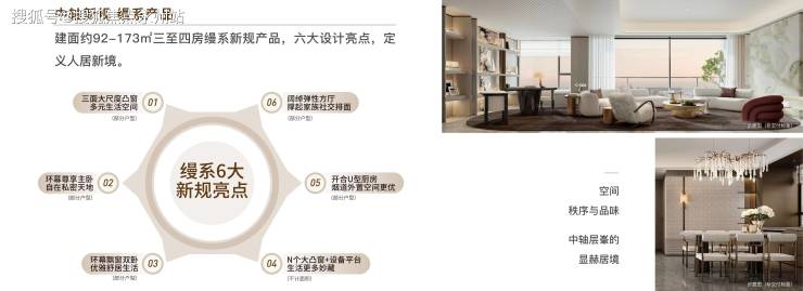 空间创新:主卧面积超30㎡,三面采光搭配弧形飘窗,中西双厨设计满足高端社交需求。