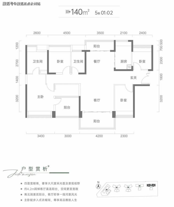 140㎡4+1房2卫998-1145万 单价:7.12-8.18万
