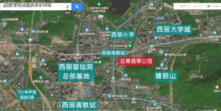 总章翡翠公馆位于大沙河东侧,珠光北路和留仙大道交汇处的南侧。