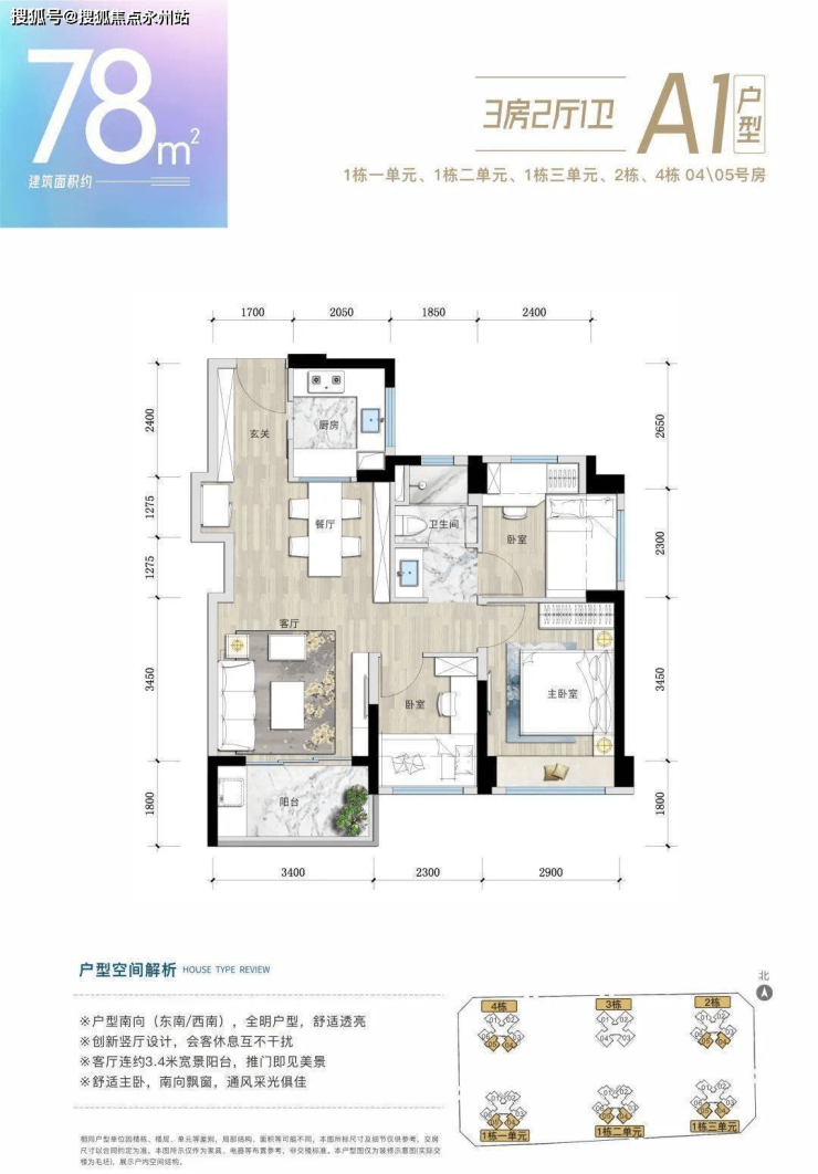 建面约78-95㎡理享3房