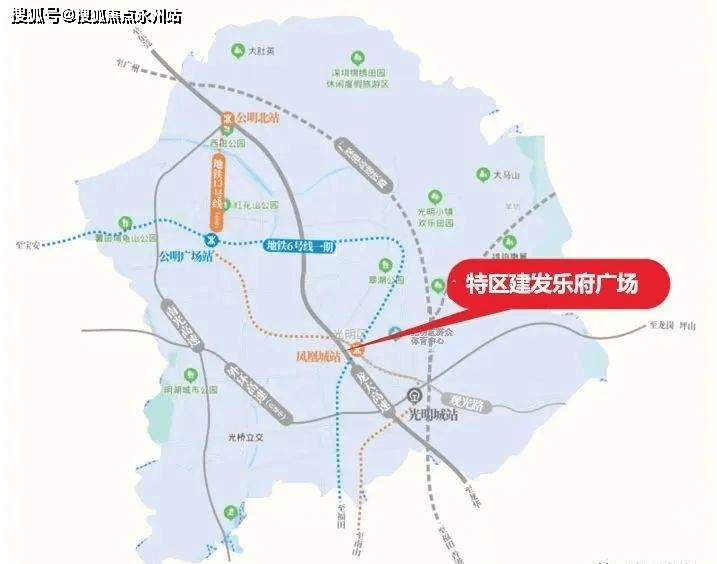 特区建发乐府广场位于光明大道和观光路的交汇处西侧、龙大高速光明出口处,紧邻区政府,雄踞光明科学城门户的重要位置,占据光明区政治、经济、文化中心,紧邻占地约10万㎡开明公园、占地约57万㎡区级市政公园新城公园,周边各项配套日益完善。