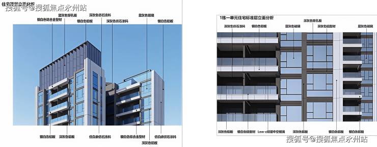 项目公建化外立面采用铝板+玻璃幕墙形式,提升项目整体形象,为业主提供视觉享受,增加对居住环境的满意度和归属感,最大化市场竞争力。