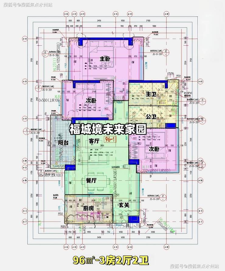 96㎡(横厅):独门独户设计,南北通透,客餐厅开间 5.7 米,全屋 10 面飘窗,主卧南北对流,得房率约 93.73%,阳台主朝西南。