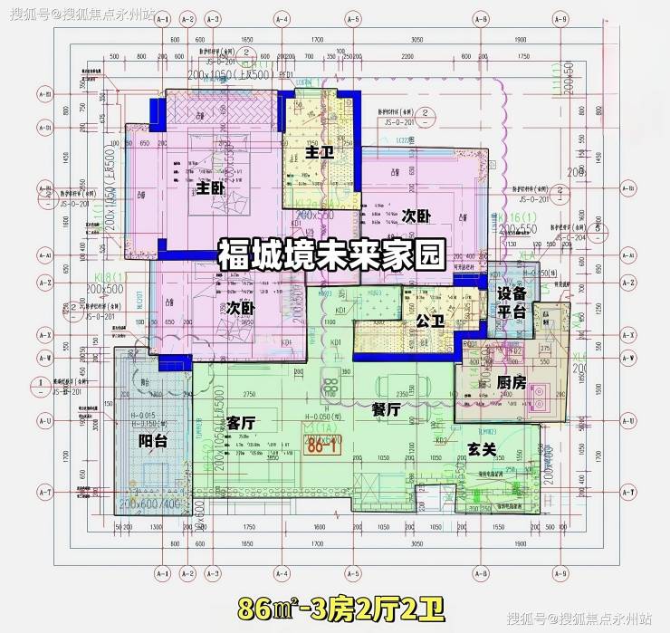 86㎡:竖厅设计,客厅开间 3.4 米,进门玄关设计,主卧 13.52㎡,公卫三段式分离,西南朝向。