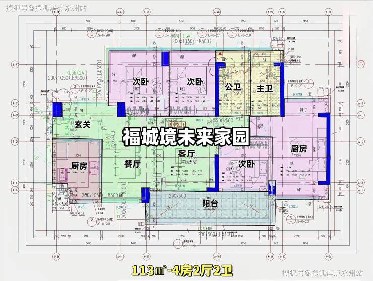 113㎡ 4 房 2 厅 2 卫:横厅南北通透,客餐厅开间 6.2 米,独门独户,全屋 10 面飘窗,主卧南北对流。