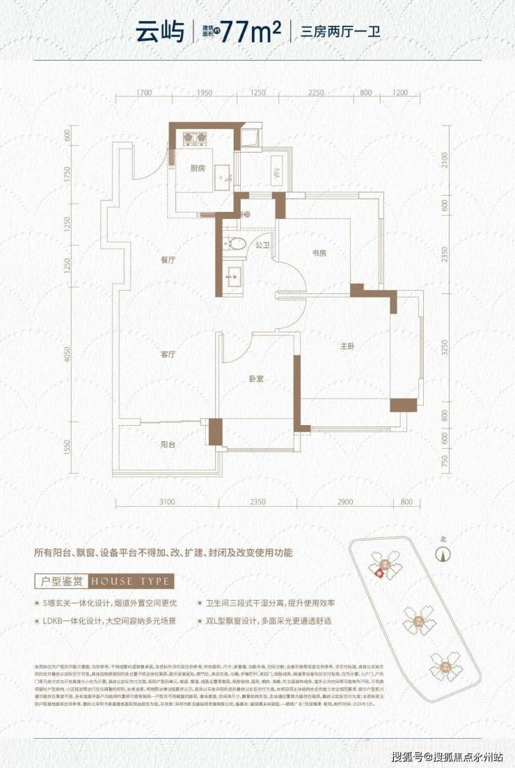 约77㎡三房一卫:经典竖厅设计,三开间朝南,客厅开间3.3米,得房率约88%,低门槛上车龙华三房,适配刚需首置家庭。