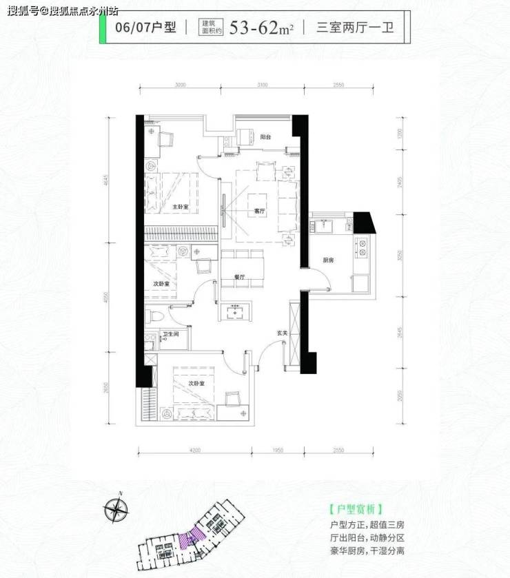 福田即小户型住宅现房——君临天下·君临芯公馆,66套住宅和198套公寓,面积段均为34-76平(一房两厅一卫、两房两厅一卫、三房两厅一卫),使用率高达100%多(每个户型使用率均会有区别)