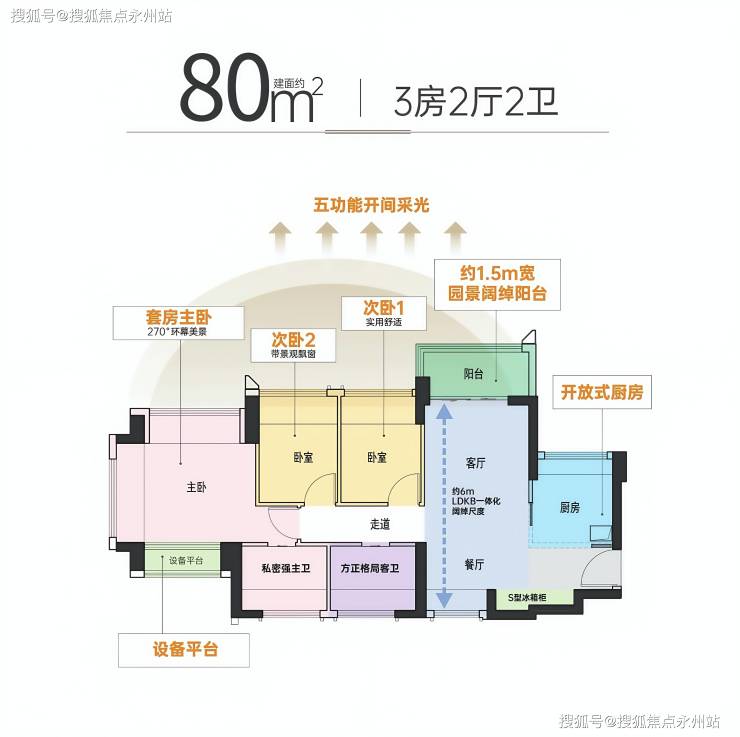 建面约80㎡3房2厅2卫,折后约328万起