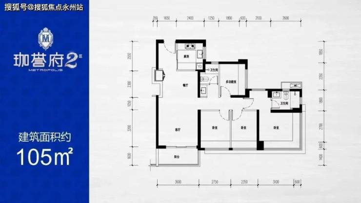 105㎡的4房2厅2卫,设计的是竖厅格局,动静分区,客厅3.6米开间,S墙设计预留冰箱卡槽位,4个卧室分别为3.3/2.75/2.35/2.35米的宽度,主卧270°环幕飘窗视野,U型厨房,阳台进深1.6米,得房率:77.31%(不含赠送),西南或东南朝向看小区花园。