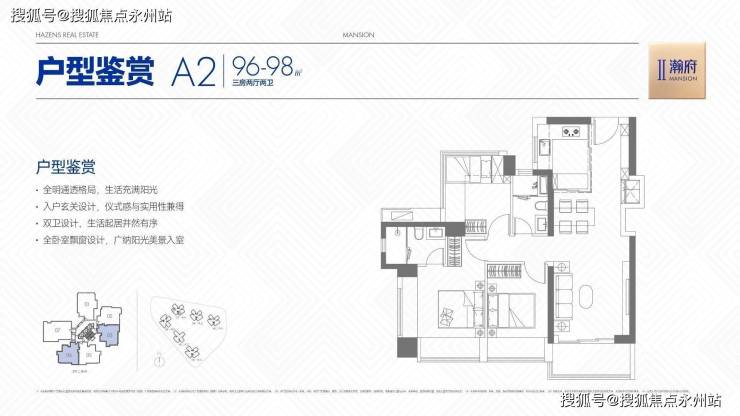 96-98㎡3房2厅2卫03/05/06(A2/A3)户型,设计的是经典竖厅三开间朝南格局,客厅3.5米开间,LDKB一体化,S墙设计预留冰箱卡槽位,主卧+1个次卧双飘窗。