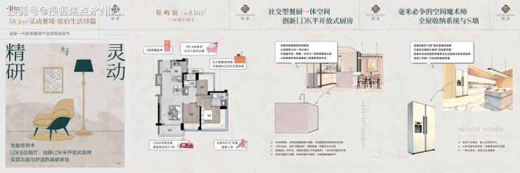 收纳系统:玄关“800库”可收纳20双鞋+行李箱,厨房S墙设计增加储物空间。