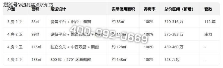 价格:备案均价4.26万/㎡,折后均价约3.87万/㎡,总价310万起(83㎡)