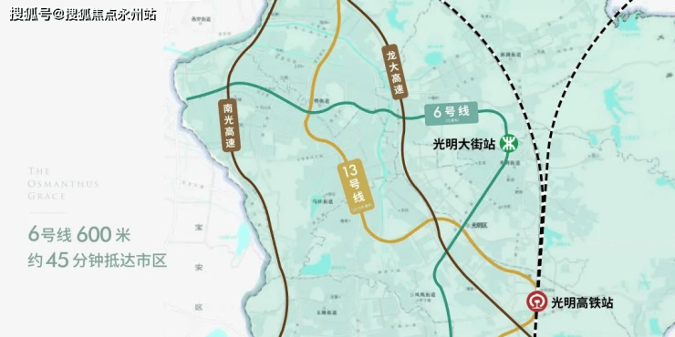 3横2纵:光明大街、光辉大道、公园大道、光明大道、华裕路