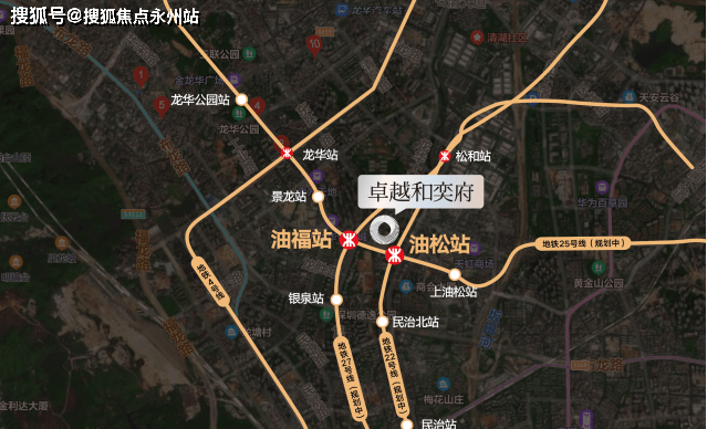 22/25/27号线(规划中)三轨规划环绕,家门口的地铁站,直线距离约200m油松站&约400m油福站(规划中);未来深大城际轨道20分钟抵达宝安国际机场。紧邻龙华大道、工业路,串联梅观快速、人民路、布龙路等多条主干道,畅达全城。